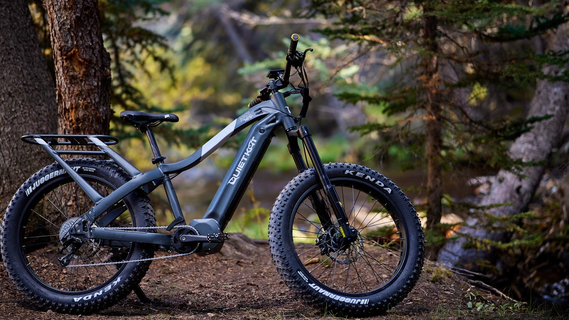The QuietKat Apex Pro is manufactured to take a beating. With a heavy-duty frame, hydraulic brakes, fat tires that grip, and 140mm of front-end suspension, you can ride confidently in the most harrowing conditions.
